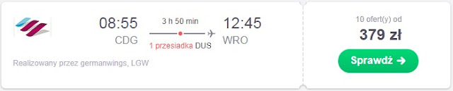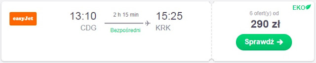 Inna możliwość to lot z Krakowa do portu Paryż Charles de Gaulle za 534 zł REZERWUJ====>