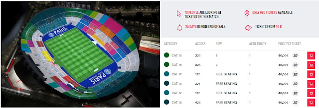 Wejściówki dostępne są za pośrednictwem oficjalnej strony internetowej Paris Saint-Germain. Do zakupu biletów niezbędna jest darmowa rejestracja, a kupione bilety dostaniemy drogą mailową. Najtańsze z wejściówek wraz z opłatami kosztują około 47,2€ (ok. 204 zł) REZERWUJ====>
