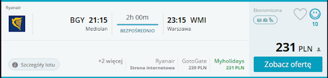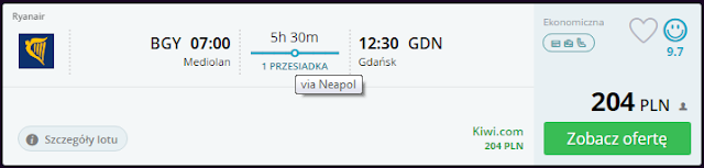Wracamy dnia następnego po meczu 02.10 z Bergamo do Warszawy z przesiadką w Kolonii za 180 zł lub bezpośrednio za 231 zł REZERWUJ====> lub do Gdańska z jedną przesiadką w Neapolu za 204 zł REZERWUJ====>