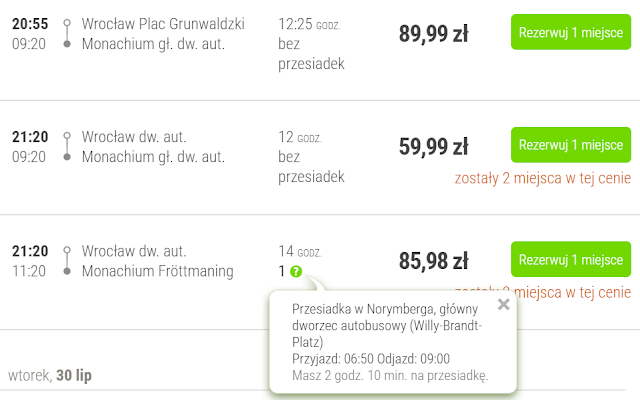 Wyjazd do Niemiec planujemy w dniach 29-31 lipca. Za przejazd w obie strony zapłacimy z Wrocławia od 219 zł REZERWUJ====>, Poznania od 234 zł REZERWUJ====>, Gdańska od 249 zł REZERWUJ====>, Warszawy od 266 zł REZERWUJ====> oraz Krakowa od 296 zł REZERWUJ====>.