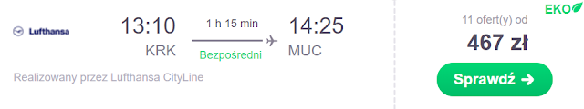 Dla kibiców, którzy wolą do stolicy Monachium dotrzeć szybciej polecamy lot w dniu meczów z Krakowa za 467 zł REZERWUJ====>.