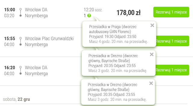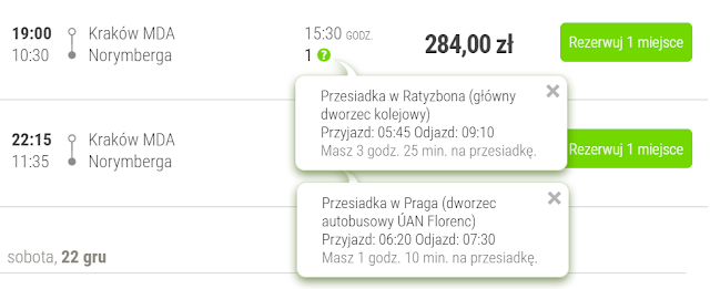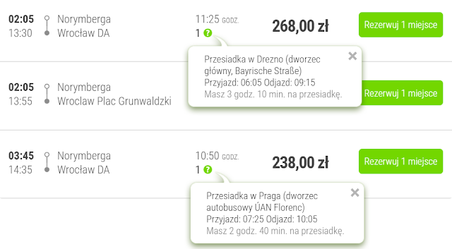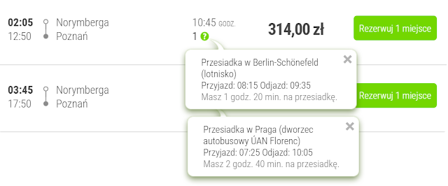 Powrót planujemy także Flixbusem. Za bilet z Norymbergi do Wrocławia zapłacimy od 238 zł REZERWUJ====>, Poznania od 238 zł REZERWUJ====>, Warszawy za 294 zł REZERWUJ====> i Krakowa za 298 zł REZERWUJ====>.