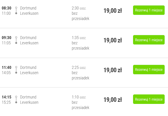 Z kolei do Leverkusen dostaniemy się Flixbusem już za 19 zł REZERWUJ====>.