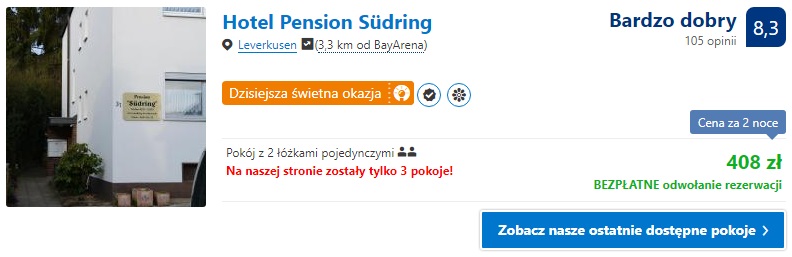 W dzisiejszych propozycjach coś dla fanów Bundesligi. Bayer Leverkusen podejmie na własnym stadionie Borussię Monchengladbach. Walka o bezpośredni awans do fazy grupowej Ligii Mistrzów w Bundeslidze jest w tym sezonie niezwykle zaciekła. Obecnie czwarty Bayer ma zaledwie 7 punktów przewagi nad dziesiątą Borussią. Mecz odbędzie się 10 marca o godz. 18:30 na BayArena w Leverkusen. Za przeloty, bilet na mecz oraz nocleg zapłacimy już od ok. 512 zł!