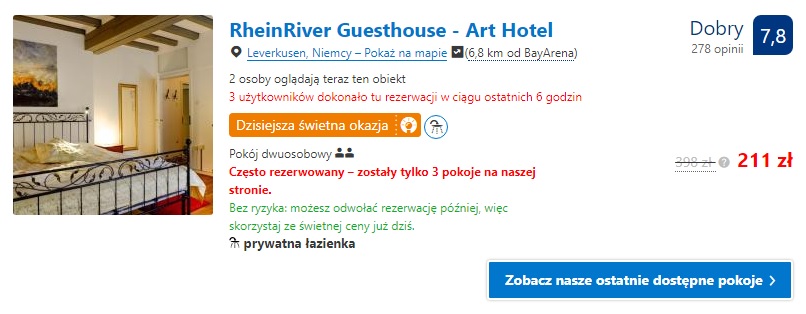 W przypadku dwóch noclegów proponujemy nocleg w ACHAT Comfort Köln/Monheim gdzie za dwie noce w pokoju dwuosobowym zapłacimy 491 zł ( ok. 123 zł os./noc). Drugim obiektem jest RheinRiver Guesthouse – Art Hotel , w którym za noc w pokoju dwuosobowym zapłacimy 211 zł ( ok. 106 zł os./noc).