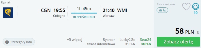Powrót proponujemy dzień po meczu z Koloni do Katowic za 127 zł* (cena regularna 158 zł) REZERWUJ ==== >, z Koloni do Warszawy za 58 zł REZERWUJ ==== >, lub z Dortmundu do Gdańska za 106 zł*(cena regularna 145 zł) REZERWUJ ==== >