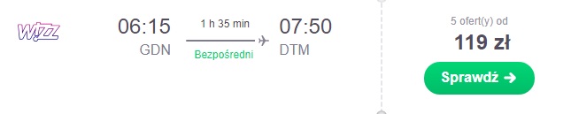 Proponujemy wylot w dniu meczu z Katowic do Dortmundu za 84 zł* (cena regularna 129 zł) REZERWUJ====> lub z Gdańska do Dortmundu za 74 zł* (cena regularna 119 zł) REZERWUJ====>