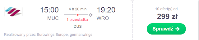 Dla fanów, którzy pozostaną na noc w Monachium proponujemy wylot do Wrocławia (z przesiadką w Düsseldorfie) za 299 zł REZERWUJ====>.
