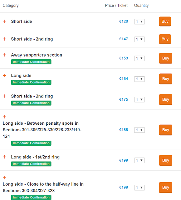 Wejściówki zakupimy na rynku wtórnym. Ceny wraz z opłatą rezerwacyjną otrzymamy od 137 EUR (ok. 588 zł) REZERWUJ====>.