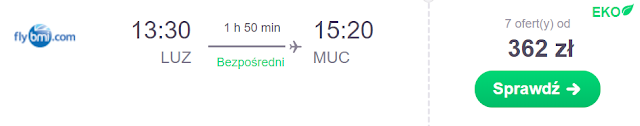 Dla kibiców, którzy zdecydują się pozostać w Niemczech na noc oferujemy wylot z Monachium do Warszawy Modlin (z przesiadką w Dublinie za 280 zł) REZERWUJ====> lub bezpośrednio do Lublina za 457 zł REZERWUJ====>.