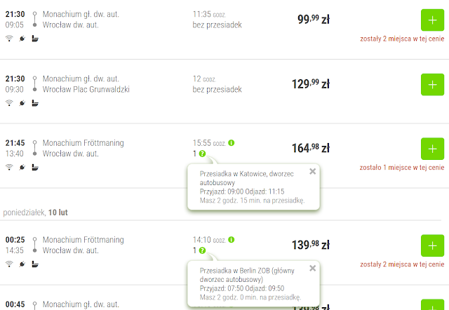 Tańszą opcją jest wyjazd Flixbusem, którym do Monachium wyjedziemy 8 lutego, zaś powrót rezerwujemy na kilka godzin po końcowym gwizdku. Do stolicy Bawarii wraz z powrotem dostaniemy się z Wrocławia od 200 zł REZERWUJ====>, od 256 zł ze Szczecina REZERWUJ====>, od 268 zł z Krakowa REZERWUJ====>, od 270 zł z Poznania REZERWUJ====> oraz od 280 zł z Warszawy REZERWUJ====>.