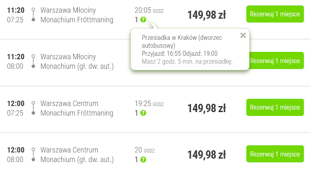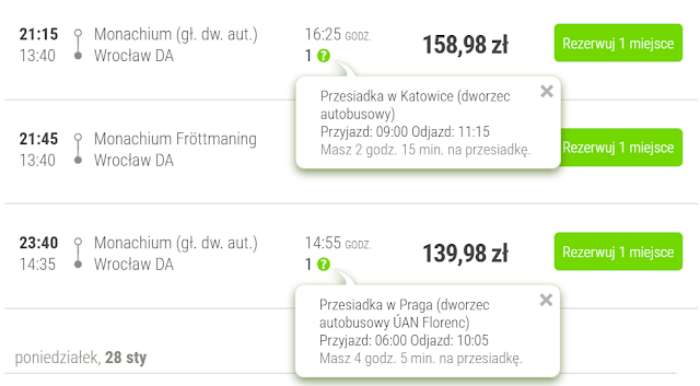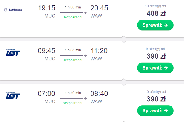 Alternatywą pozostaje transport lotniczy. Za lot 28 stycznia z Monachium do Warszawy zapłacimy od 390 zł REZERWUJ====>.