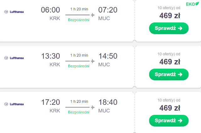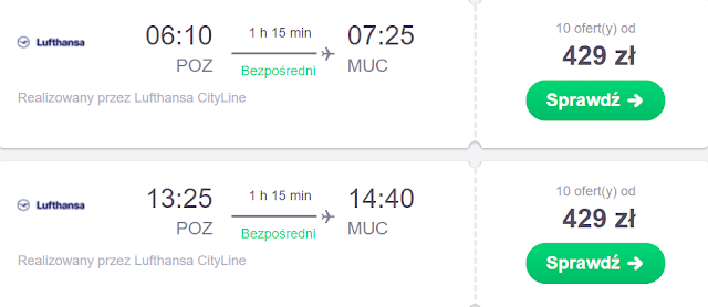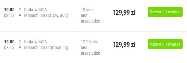 Dla kibiców szczególnie ceniących swój czas oferujemy wylot 26 stycznia do Monachium. Do stolicy Bawarii dolecimy z Poznania za 429 zł REZERWUJ====>, Warszawy za 445 zł REZERWUJ====> i Krakowa za 469 zł REZERWUJ====>.