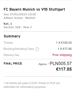 Wejściówki na mecz Bawarczyków ze Stuttgartem nabędziemy poprzez rynek wtórny. Najtańsze bilety kosztują 117,85 EUR (ok. 506 zł) REZERWUJ====>.