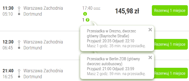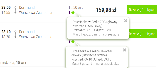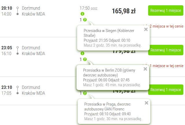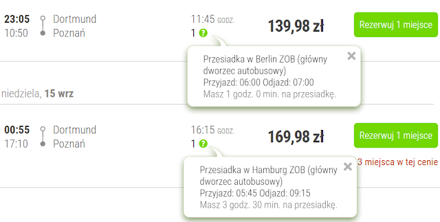 Do Dortmundu dotrzemy również Flixbusem m.in. z Poznania od 220 zł w obie strony REZERWUJ====>, Warszawy od 282 zł REZERWUJ====> oraz Krakowa od 300 zł REZERWUJ====>. Podane screeny dotyczą kursów w dniach 13-14/15 września.
