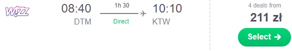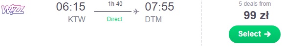 Możliwość powrotu jest więcej niż wylotów, więc proponujemy loty powrotne na kilka innych lotnisk. Z Dortmundu, dzień po meczu możemy wrócić do Poznania za 43 zł REZERWUJ ==== >, do Krakowa również za 43 zł REZERWUJ ==== >, do Gdańska za 158 zł* (cena regularna 232 zł) REZERWUJ ==== >, lub do Katowic za 142 zł* (cena regularna 211 zł) REZERWUJ ==== >. Do Warszawy wylecimy dzień po meczu z Kolonii za 174 zł REZERWUJ ==== >