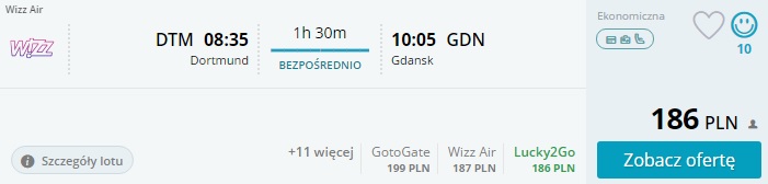 Powrót planujemy dzień po meczu z Dortmundu do Krakowa za 37 zł REZERWUJ ==== >, do Gdańska za 148 zł* (cena regularna 186 zł) REZERWUJ ==== > lub do Katowic za 64 zł* (cena regularna 104 zł) REZERWUJ ==== >