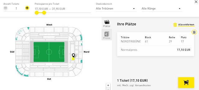 Wejściówki na spotkanie dostępne są za pośrednictwem oficjalnej strony internetowej Borussii Dortmund. Cena najtańszych wejściówek to 19,1 EUR wraz ze wszystkimi opłatami (ok. 80 zł) REZERWUJ====>
