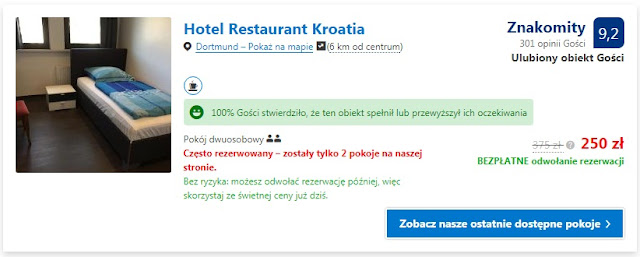 Proponujemy nocleg w dwóch miejscach. Tańsza opcja i oddalona nieco dalej od stadionu – Hotel Restaurant Kroatia to koszt 250 zł za pokój dwuosobowy (125 zł/os noc). Inną możliwością jest pobyt w Apartment in Zentrum, gdzie noc dla dwóch osób kosztuje 308 zł (154 zł/os/noc).