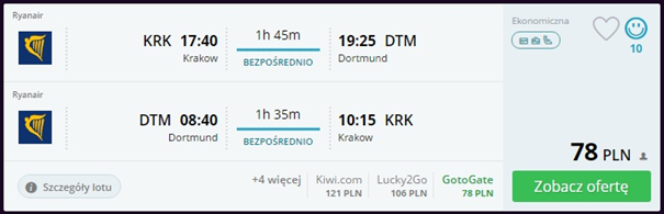 Propozycja przelotu obejmuje wylot z Polski dzień przed spotkaniem 26.01 i powrót dzień po meczu 28.01. Pierwsza propozycja dotyczy wylotu z Krakowa za 78 zł, REZERWUJ====> druga to wylot z Gdańska za 78 zł* (cena regularna 122 zł). W obu przypadkach cena tyczy się lotów w obie strony. REZERWUJ====>