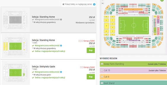 Gdyby cena na spotkanie była nieaktualna, bilety niedostępne albo potrzebowałbyś naszej gwarancji napisz do nas. W wielu przypadkach bilety na mecz możemy dostać jeszcze z kilku innych źródeł. Posiadamy kontakty z wieloma klubami, firmami oraz osobami, które zajmują się dystrybucją biletów.