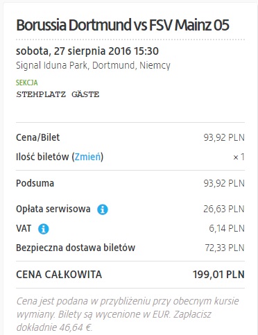 Wszyscy piłkarscy kibice oczekują w napięciu na inaugurację sezonów ligowych. Zamiast tylko nerwowo oczekiwać proponujemy sięgnąć do kieszeni i wybrać się na mecz na żywo! Dzisiaj okazja dla fanów Bundesligi. Przedstawiamy propozycję wyjazdu do Dortmundu, gdzie Borussia zainauguruje swój sezon goszcząc innego niemieckiego przedstawiciela w europejskich pucharach, FSV Mainz. Za przelot wraz z biletem na mecz zapłacimy już od ok. 430zł !