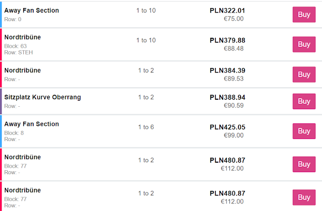 Na chwilę obecną bilety dostępne są na rynku wtórnym. Cena najtańszej wejściówki wynosi 88,39 EUR (ok. 379 zł) REZERWUJ====>.