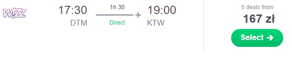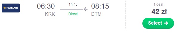 Proponujemy poranne loty do Dortmundu z Krakowa za 42 zł REZERWUJ ==== >, z Katowic za 84 zł* (cena regularna 129 zł) REZERWUJ ==== > lub z Gdańska za 164 zł* (cena regularna 209 zł) REZERWUJ ==== >
