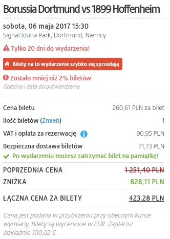 Bundesliga: Borussia Dortmund – Hoffenheim już od 611zł ! (przelot+bilet na mecz)
