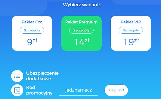 Proponujemy zabezpieczyć się na czas wyjazdu poprzez wykup ubezpieczenia turystycznego. Za dzień lub dwa dni gwarancji ubezpieczeniowej zapłacimy już od kilku złotych – dodatkowo używając kodu rabatowego “jedznamecz” zyskamy dodatkowy upust w wysokości 10%! REZERWUJ====>