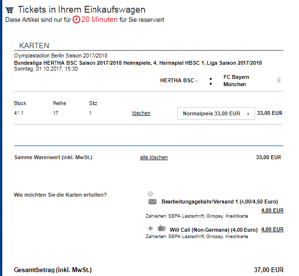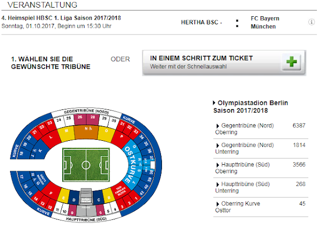 Bilety dostaniemy na oficjalnej stronie Herthy Berlin. Na chwile obecną ceny zaczynają się od 33 EUR + 4 EUR opłat manipulacyjnych ( ok.157 zł ) REZERWUJ====>