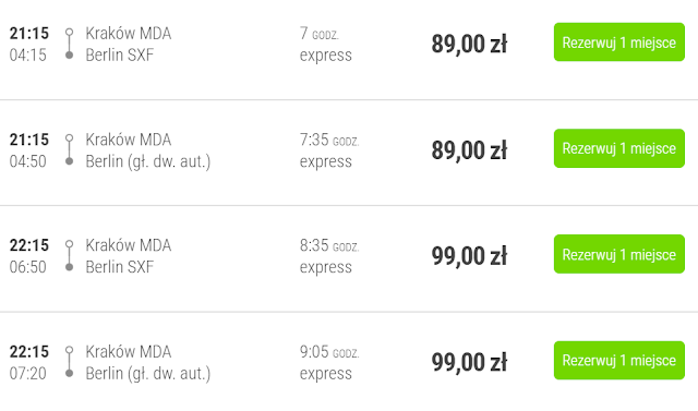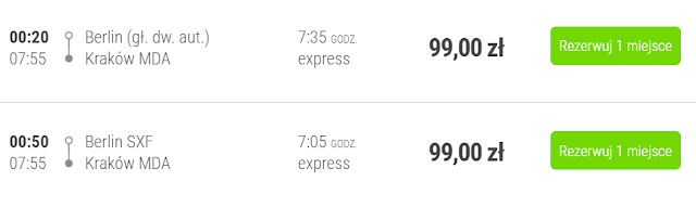 W przypadku odjazdu z Krakowa i Warszawy zalecamy wyjazd dzień wcześniej – 7 grudnia. Za przejazd do Berlina zapłacimy od 89 zł REZERWUJ====>, i od 99 zł REZERWUJ====>.