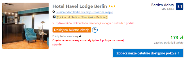 Dla fanów, którzy chcą pozostać na noc w Berlinie polecamy Hotel Havel Lodge Berlin. Nocleg w dniach 8-9 grudnia kosztuje 173 zł za pokój jednoosobowy oraz 251 zł (125,5 zł os./noc) za dwuosobowy.