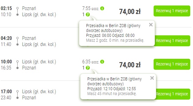 Do Lipska najtaniej w tym terminie dojedziemy autobusami Flixbus. Proponujemy wyjazd z Poznania w dniu meczu (z przesiadką w Berlinie) za 74 zł REZERWUJ ==== > oraz powrót dzień po meczu (z przesiadką w Berlinie) również za 74 zł REZERWUJ ==== > lub z Wrocławia (z przesiadką w Dreznie) za 64 zł REZERWUJ ==== >, oraz powrót dzień po meczu (z przesiadką w Berlinie) za 74 zł REZERWUJ ==== > . Z Gdańska wyjeżdżamy dzień przed meczem (z przesiadką w Berlinie) za 114 zł REZERWUJ ==== > wracamy dzień po meczu (z przesiadką w Berlinie) za 108 zł REZERWUJ ==== >. Z Warszawy wyruszymy również dzień przed meczem ( przesiadka w Berlinie) za 100 zł REZERWUJ ==== >, a wracamy dzień po meczu (przesiadka w Berlinie) za 90 zł REZERWUJ ==== >.