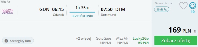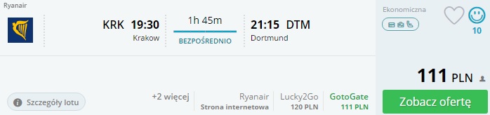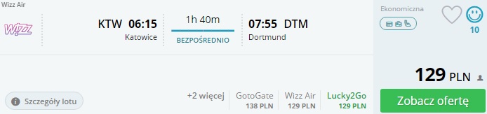 Lot powrotny planujemy w dniu meczu z Dortmundu do Krakowa za 41 zł REZERWUJ ==== >, lub dzień po meczu do Katowic za 146 zł* (cena regularna 189 zł)REZERWUJ ==== >, lub do Gdańska za 126 zł* (cena regularna 167 zł)REZERWUJ ==== >