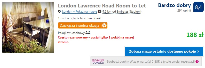 Proponujemy nocleg w wysoko ocenianym London Lawrence Road Room to Let gdzie, za 2-osobowy pokój zapłacimy 188zł (94zł/os/noc).