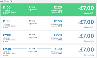 Z lotniska Stansted do Londynu i z powrotem zabierze nas przewoźnik National Express, a za bilety tam i z powrotem zapłacimy od 11 GBP (ok. 55 zł). Do lotniska w Luton dotrzemy dzięki tej samej firmy transportowej a bilet to koszt REZERWUJ====>.