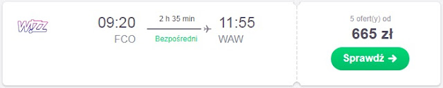 Istnieje również możliwość powrotu dwa dni po meczu 4.05, za lot z Rzymu do Warszawy zapłacimy 599 zł* (cena regularna 665 zł) REZERWUJ====>