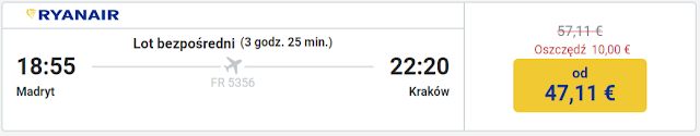 Najwygodniejszą opcją będzie bezpośredni lot do Madrytu w dniu 27 listopada z lotniska w Krakowie. Lot powrotny warto zaplanować na dzień 29 listopada REZERWUJ====>