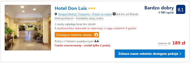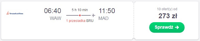 Wylot do stolicy Hiszpanii proponujemy w dniu meczu 06.11, za przelot z Krakowa zapłacimy 204 zł REZERWUJ====> Inna opcja to lot do Madrytu z Warszawy (przez Brukselę) za 273 zł REZERWUJ====>