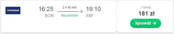 Proponujemy dwie opcje wylotu w dniu meczu 14.03. Pierwsza z nich to przelot z Berlina do Barcelony za 93 zł REZERWUJ====>