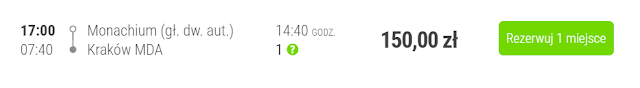 Powrót proponujemy 8 listopada Flixbusem. Za połączenie Monachium – Kraków zapłacimy 150 zł REZERWUJ====>