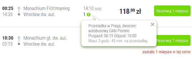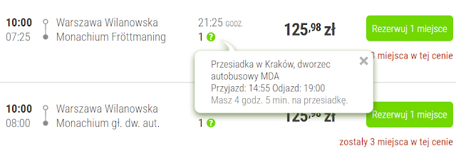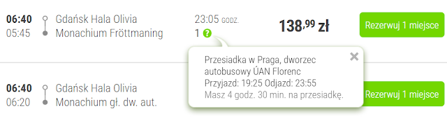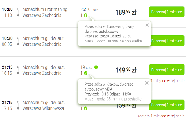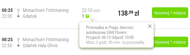 Alternatywą pozostaje Flixbus, który oferuje przejazd w obie strony (wyjazd 10, powrót 12 grudnia) od 238 zł z Wrocławia REZERWUJ====>, 276 zł z Warszawy REZERWUJ====> oraz 278 zł z Gdańska REZERWUJ====>.