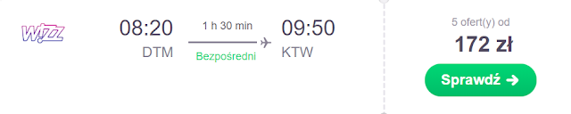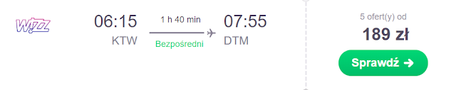 Oferujemy wylot dzień po meczu. Za przelot z Dortmundu do Krakowa zapłacimy 92 zł REZERWUJ====>, do Poznania za 86 zł* (cena regularna 129 zł) REZERWUJ====>, do Katowic za 129 zł* (cena regularna 172 zł) REZERWUJ====> oraz do Wrocławia za 129* (cena regularna 172 zł) REZERWUJ ====>
