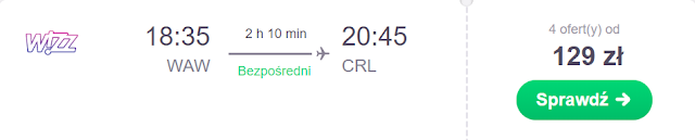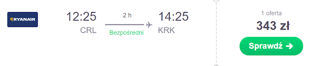 Za wspomniany przelot z Brukseli do Warszawy Modlin zapłacimy 117 zł REZERWUJ====> i Krakowa za 343 zł REZERWUJ====>.
