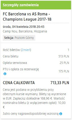 Obecnie wejściówki dostępne są za pośrednictwem rynku wtórnego. Za pojedynczy bilet, wraz ze wszystkimi opłatami, który otrzymamy w formie elektronicznej zapłacimy od ok. 714 zł REZERWUJ====>