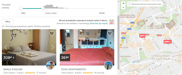 Na nocleg zachęcamy do skorzystania z popularnego serwisu wynajmu apartamentów/pokoi Airbnb.pl. W przypadku skorzystania z oferty z naszego linku zarezerwuj TUTAJ=====> otrzymują Państwo 85 zł zniżki na 1 rezerwację (opcja dla nowych użytkowników)! Apartamenty 4 osobowe w komfortowych warunkach w pobliżu stadionu Barcelona można znaleźć w granicach 200 – 300 zł za dobę (50-75 zł od osoby za noc).