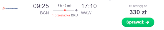 Do kraju wracamy 3 października. Z Barcelony dolecimy do Warszawy (z przesiadką w Brukseli) za 330 zł REZERWUJ====>, Poznania za 379 zł (z przesiadką w Londyn Stansted) REZERWUJ====> oraz Warszawy Modlin za 486 zł REZERWUJ====>.