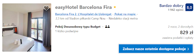 Alternatywą może być easyHotel Barcelona Fira. Za dwudniowy pobyt w pokoju dwuosobowym zapłacimy 828 zł (207 zł os./noc).