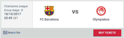 Proponujemy wyjazd na mecz Ligi Mistrzów do Barcelony gdzie miejscowa FC Barcelona zagra z greckim Olympiakosem. Po wygranym meczu Katalończyków z Juventusem to własnie ekipa Blaugrany jest zdecydowanym faworytem w grupie D. Mecz odbędzie się 18 października o godzinie 20:45 na Camp Nou w Barcelonie.